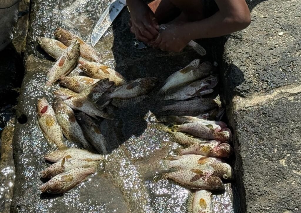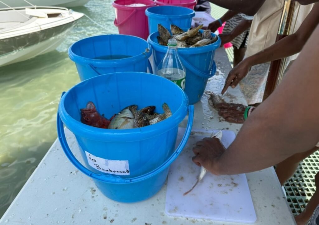 J’ai déjà attrapé d’autre espèces de poisson comme le poisson trompette, poisson aiguille, la colombine et les poissons lézards. Mais ce sont des poissons dont je ne suis pas sûre de vouloir consommer. De toute façon quand tu demande aux mauriciens, tout se mange ! même des poissons dangereux comme le laffe laboue (poisson pierre) ou le laffe volant (poissons scorpions)