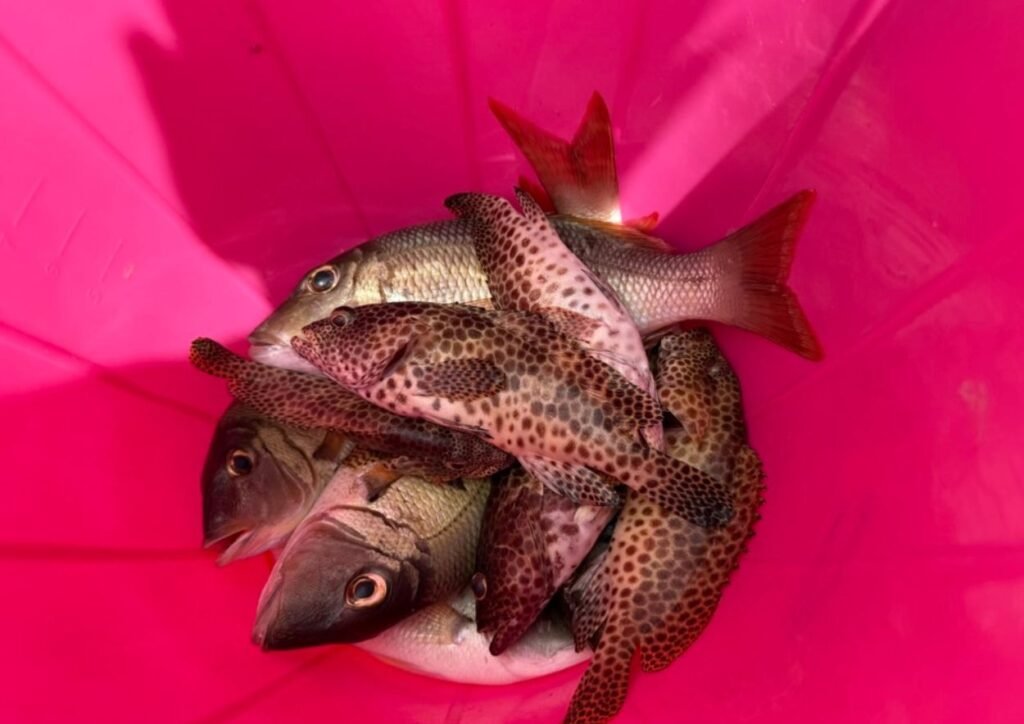 Les vieilles : ce sont des petits mérous. L’espèce que j’attrape tout le temps est le mérou cire d’abeille. Honnêtement, on les trouve dès qu’on est dans des zones avec du corail ou des roches. Très faciles à capturer et surtout extrêmement voraces, elles sautent sur n’importe quoi, même les spécimens qui font à peine deux fois la taille du leurre. Poisson plutôt petit mais à la chair délicate.